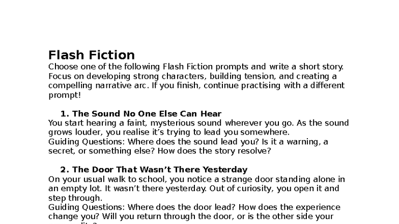 Flash Fiction Prompts for Creative Writing Practice - Studocu