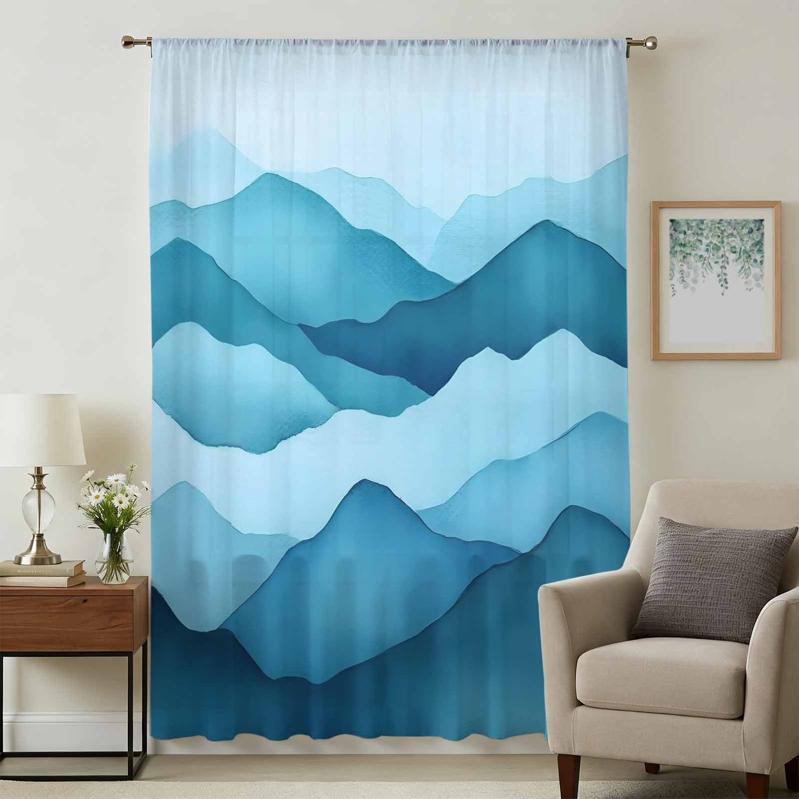 Abstract Blue Sheer Curtains 72 Inches Long, Gradient Modern Mountain ...