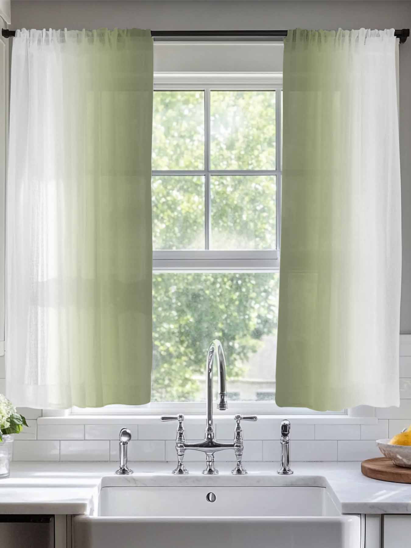 Abstract Green Gradient Sheer Curtains 2 Panels Set, White and Sage ...