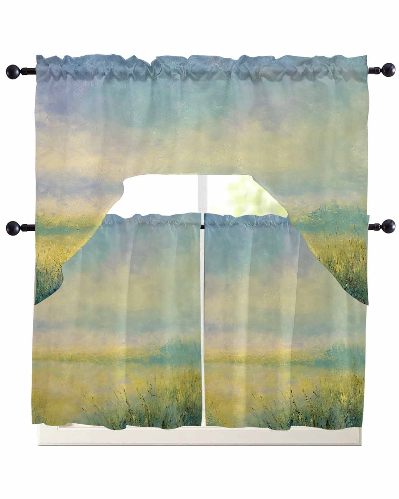 Abstract Oil Painting Swag Valance for Window, 3 Piece Green Yellow ...