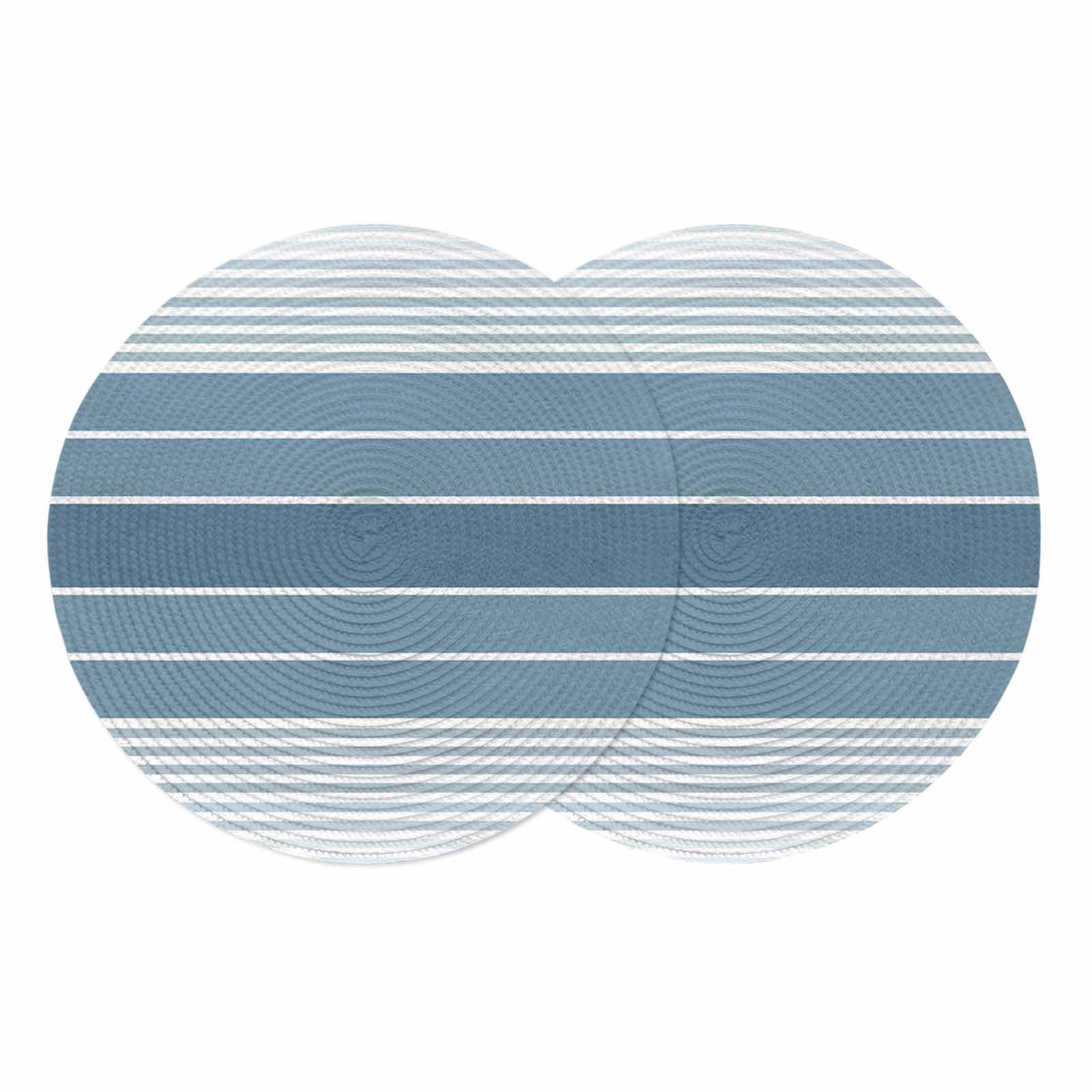 Blue Ombre Stripe Round 13 Inch Placemats Set of 2, Farmhouse Striped ...