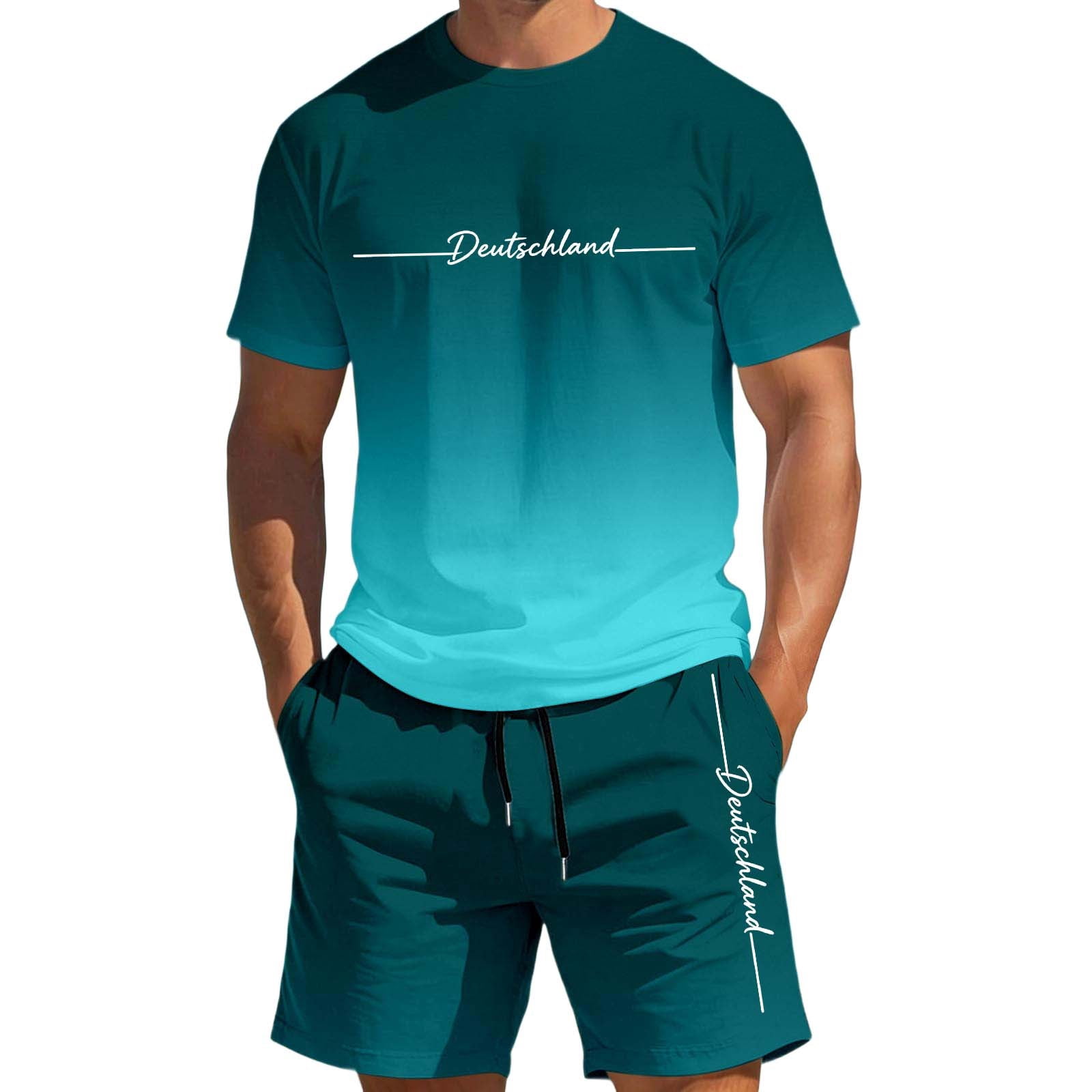 CONZONE Mens 2 Peice Outfits Gradient Color Letter Graphic Short Sleeve ...