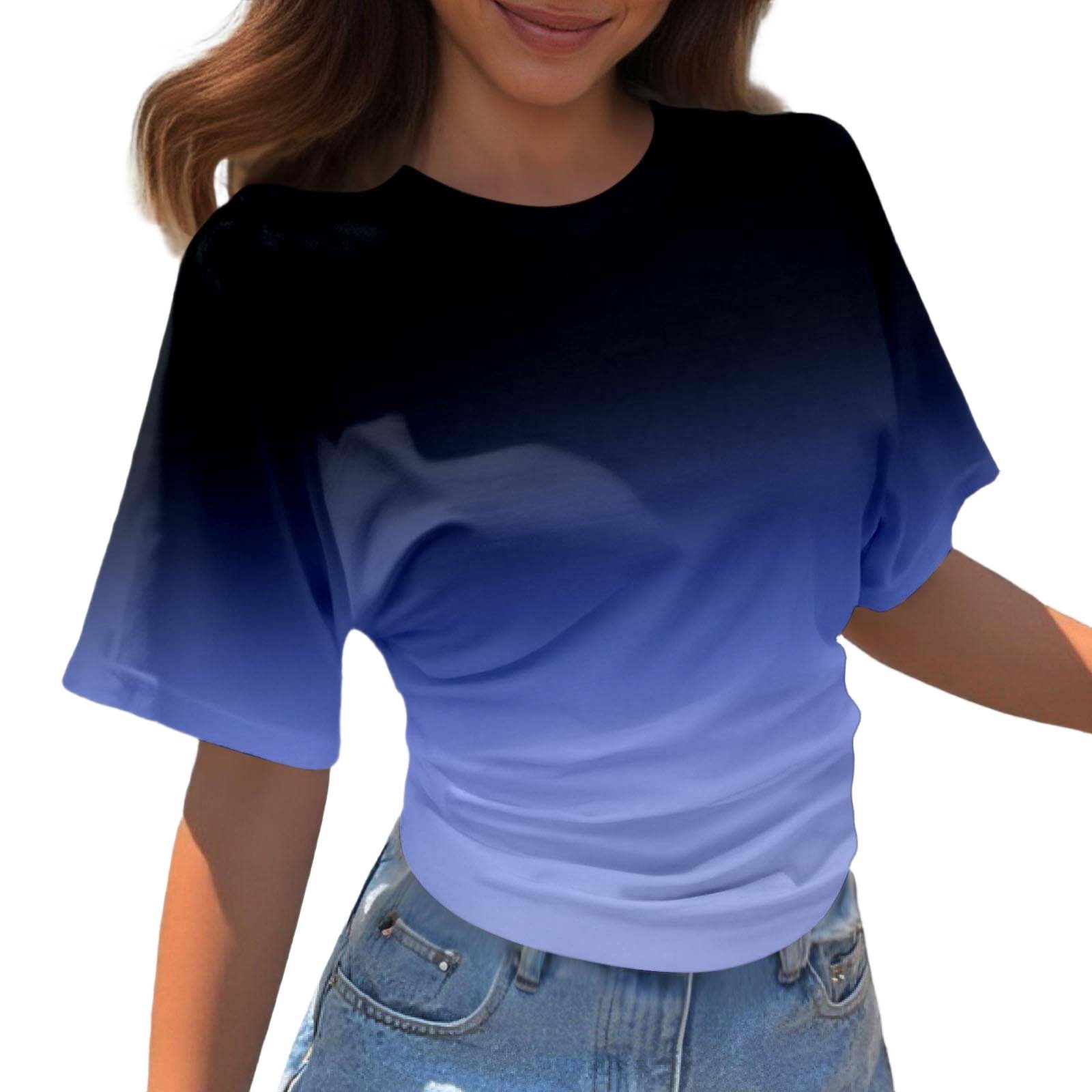 Chbgutlmr Plus Size Tops for Women Short Sleeve Crew Neck Gradient ...