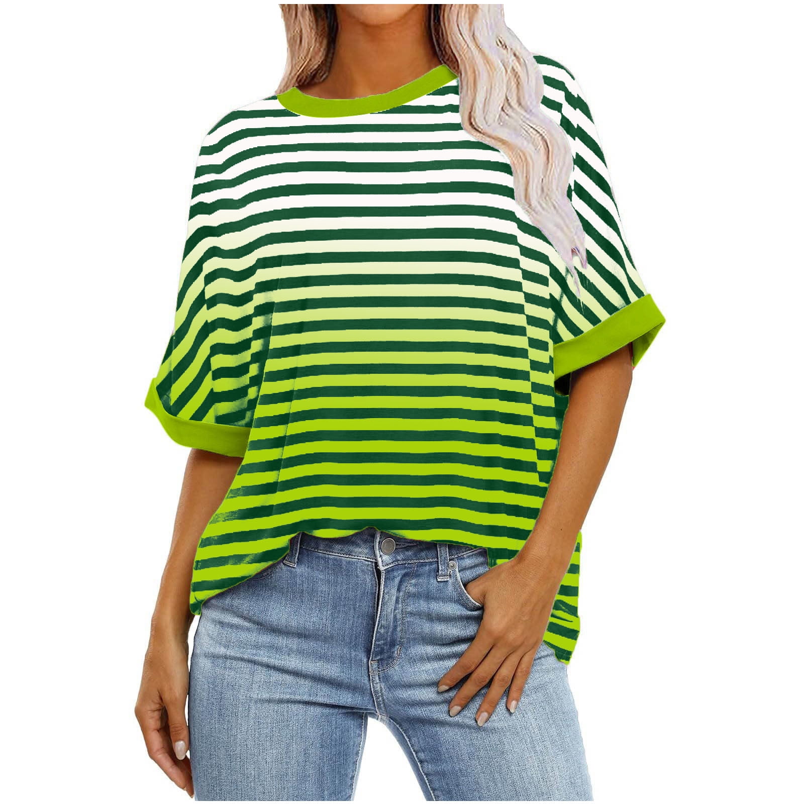 Czzoypi Women Casual Tops Striped Gradient Print Drop Shoulder Round ...