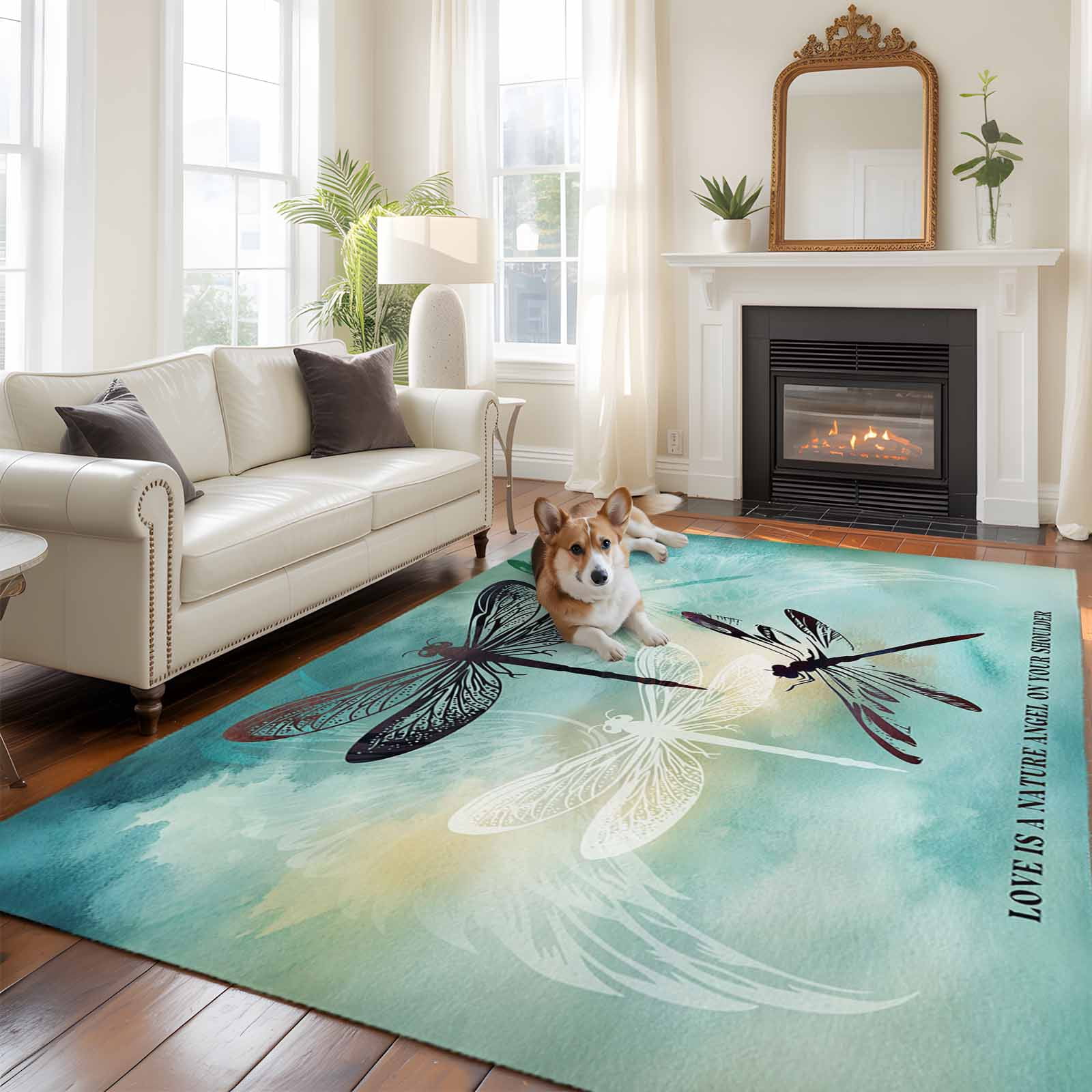 Dragonfly Washable Area Rug 5x7 Abstract Animal Teal Green Yellow ...