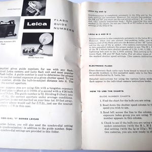 LEICA FLASH GUIDE NUMBERS FOR IIIG - ENGLISH 1958 , VINTAGE ORIGINAL ...