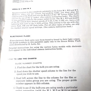 Leica Original Flash Guide Numbers for M1, M2, M3 and Iiig, Ig Cameras ...