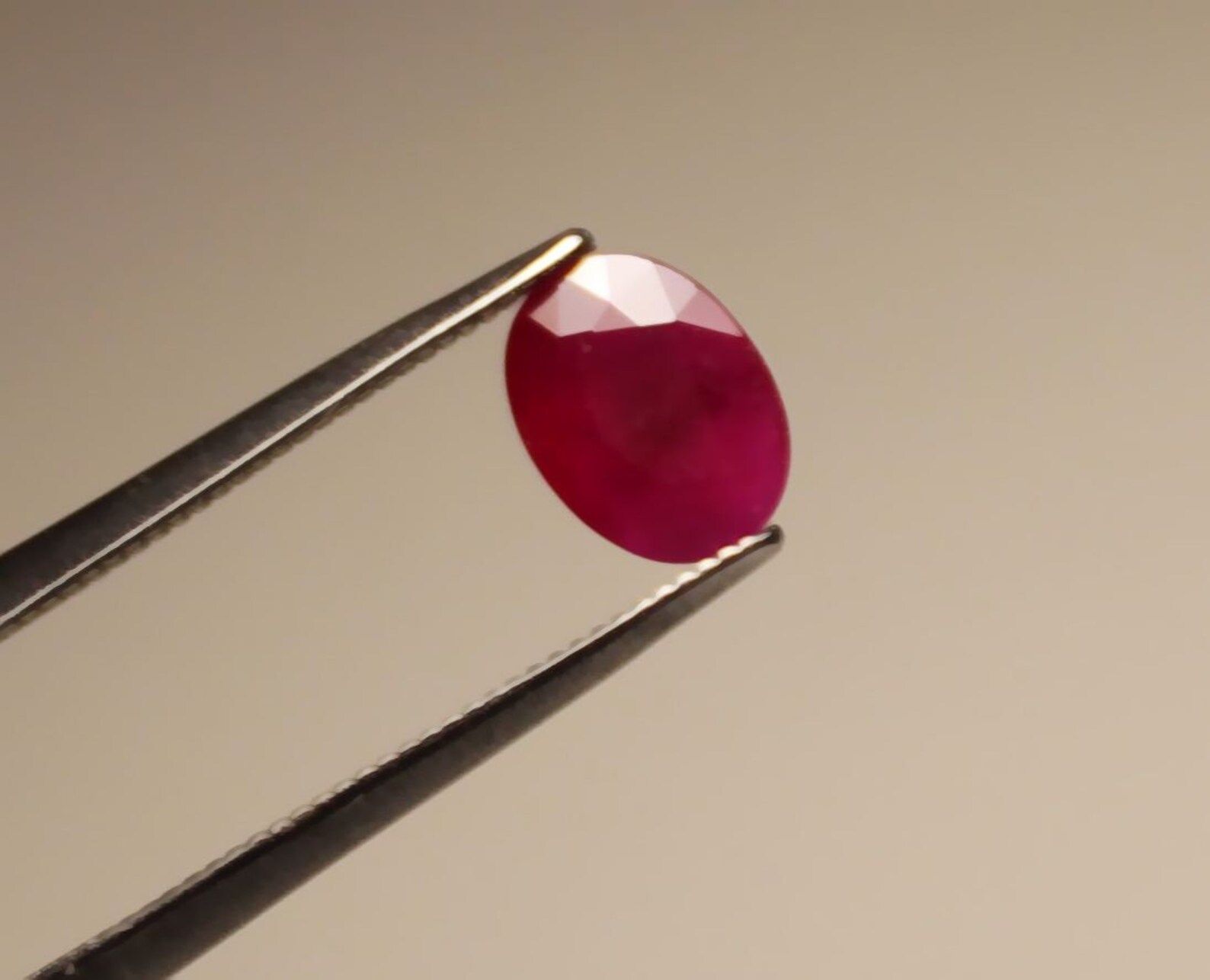 Fracture filled Ruby of 1,9 carat oval mixed cut slight violet red with ...