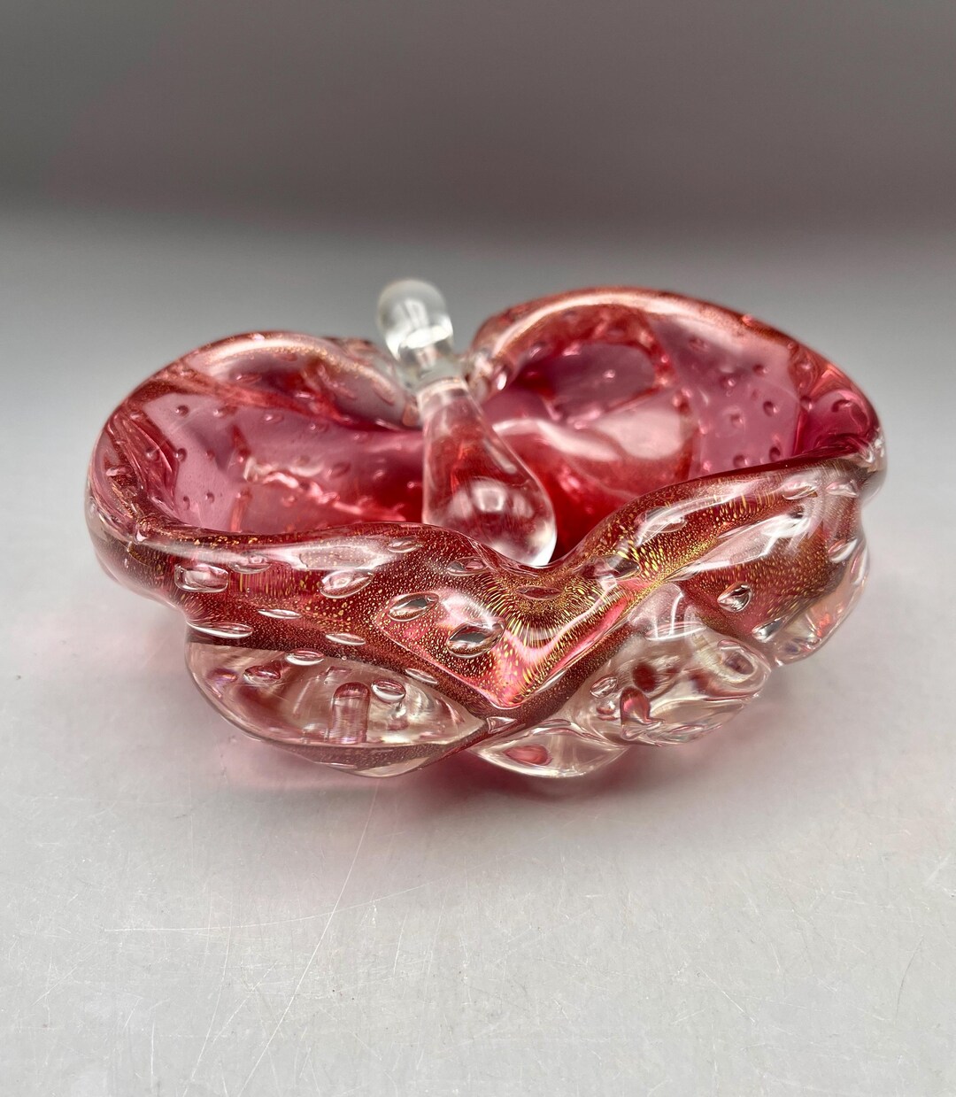 Studio Art Glass Bowl Ruby Red Top Silver Flecked Clear Base Candy Dish ...