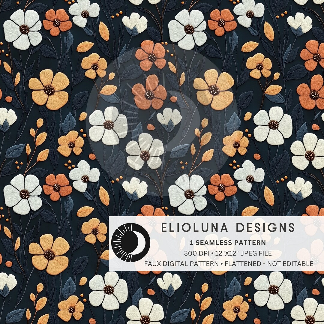 Fall Floral Pattern Digital Paper 3D Faux Embroidery Fall Floral Boho ...