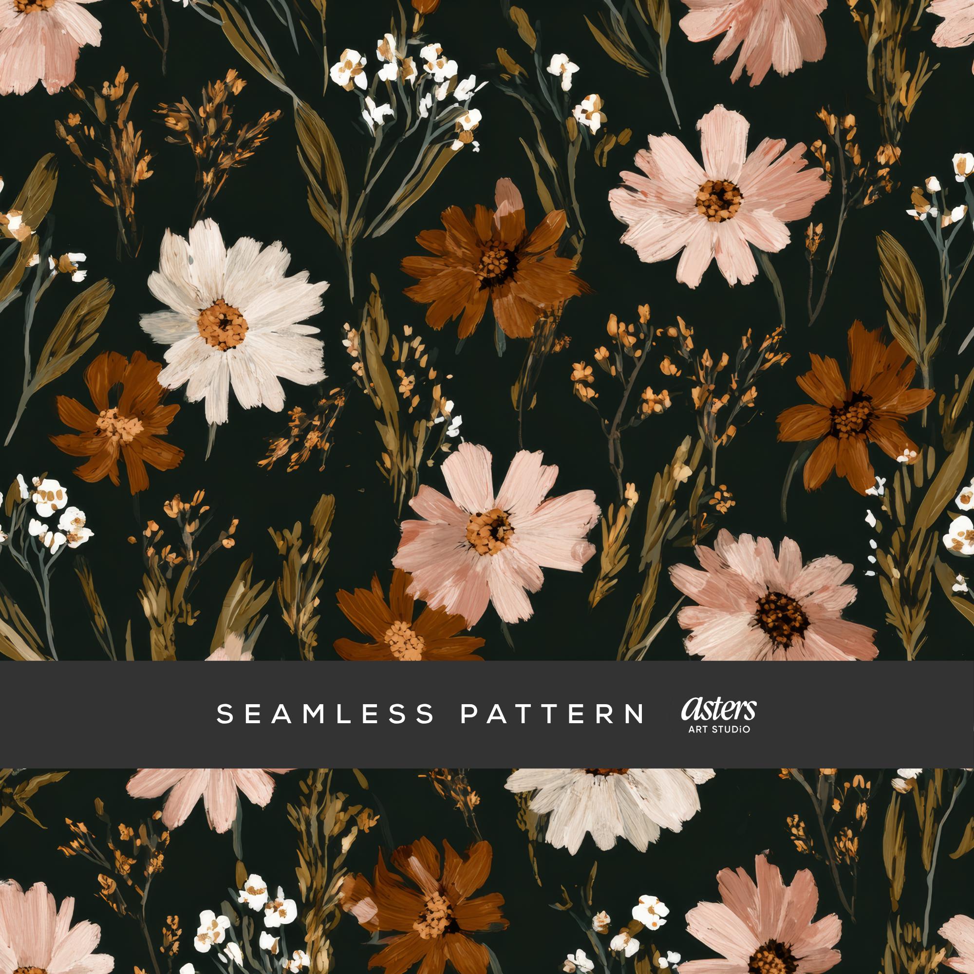 Dark Fall Florals Seamless Pattern With Hand Painted Autumn Flowers in ...