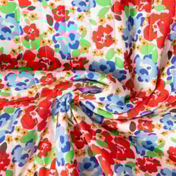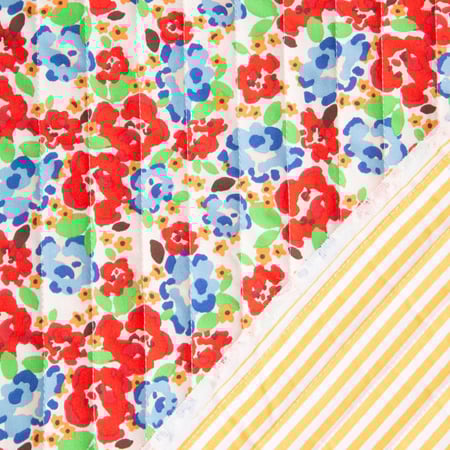 Tissu Coton Matelassé réversible fleurs Rouge et rayures Jaune sur fond ...