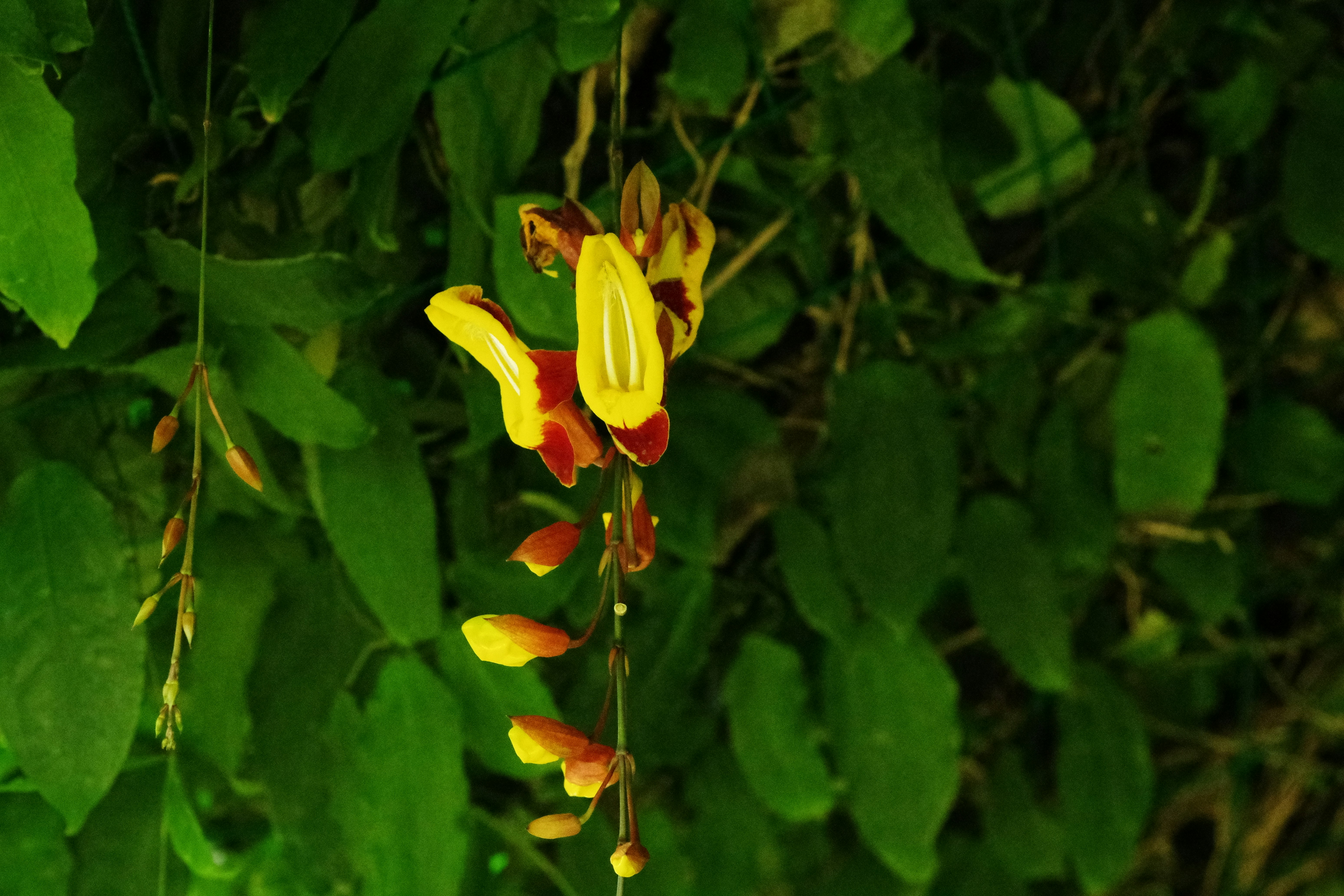 Des fleurs jaunes et rouges s’épanouissent au milieu d’une végétation ...
