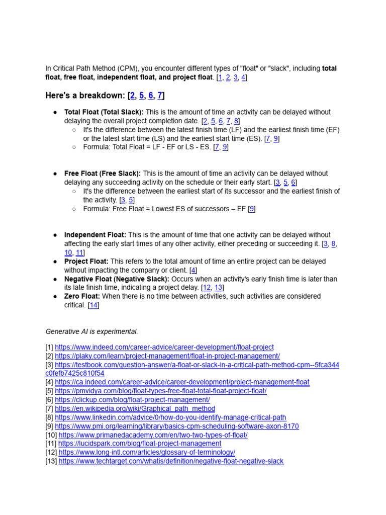 Different Types of Float in CPM | PDF