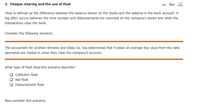 Solved 2. Cheque clearing and the use of float Aa Aa Float | Chegg.com