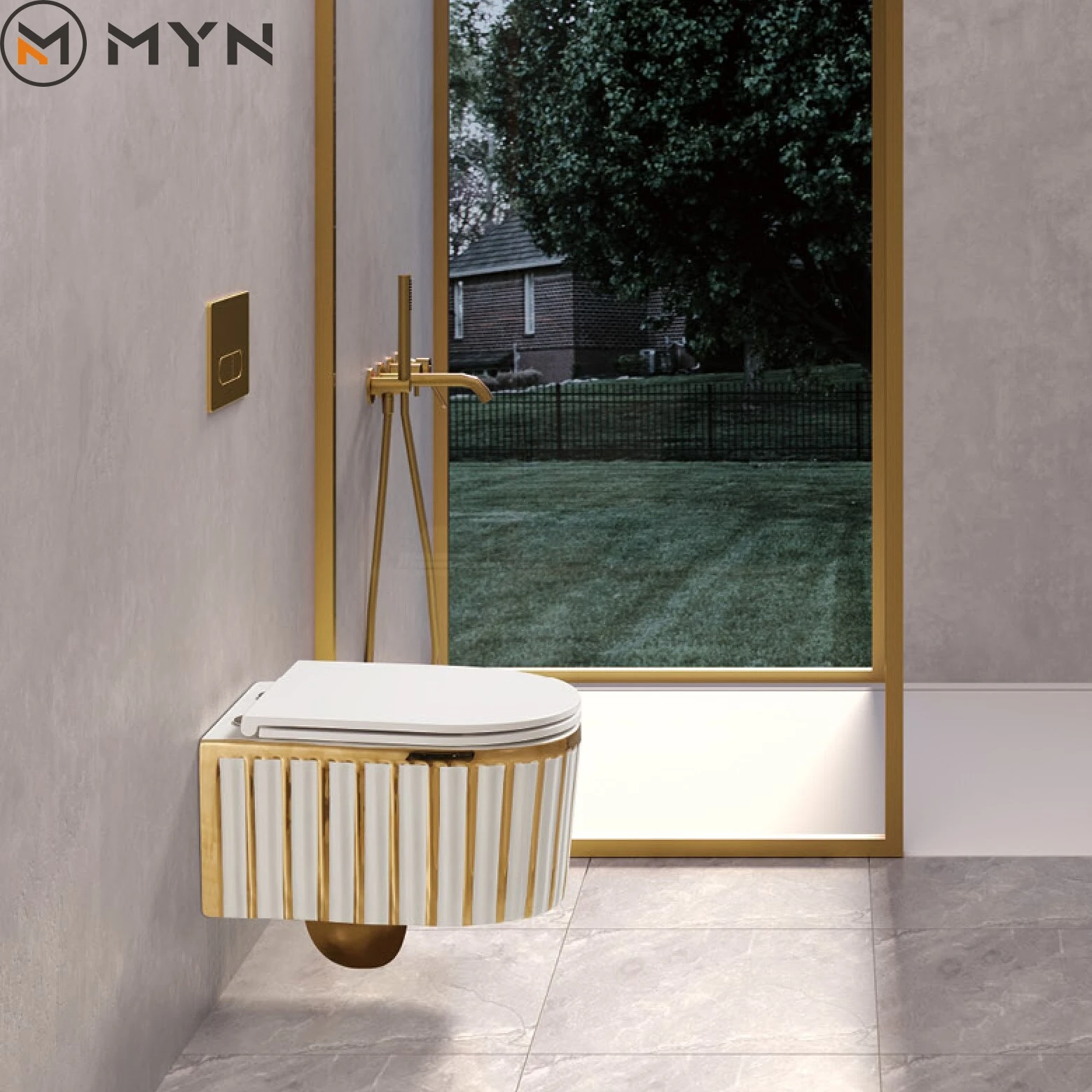 Luxury Gold Wall Hung Wc Bathroom Commode Floating Ceramic Wall Mounted ...