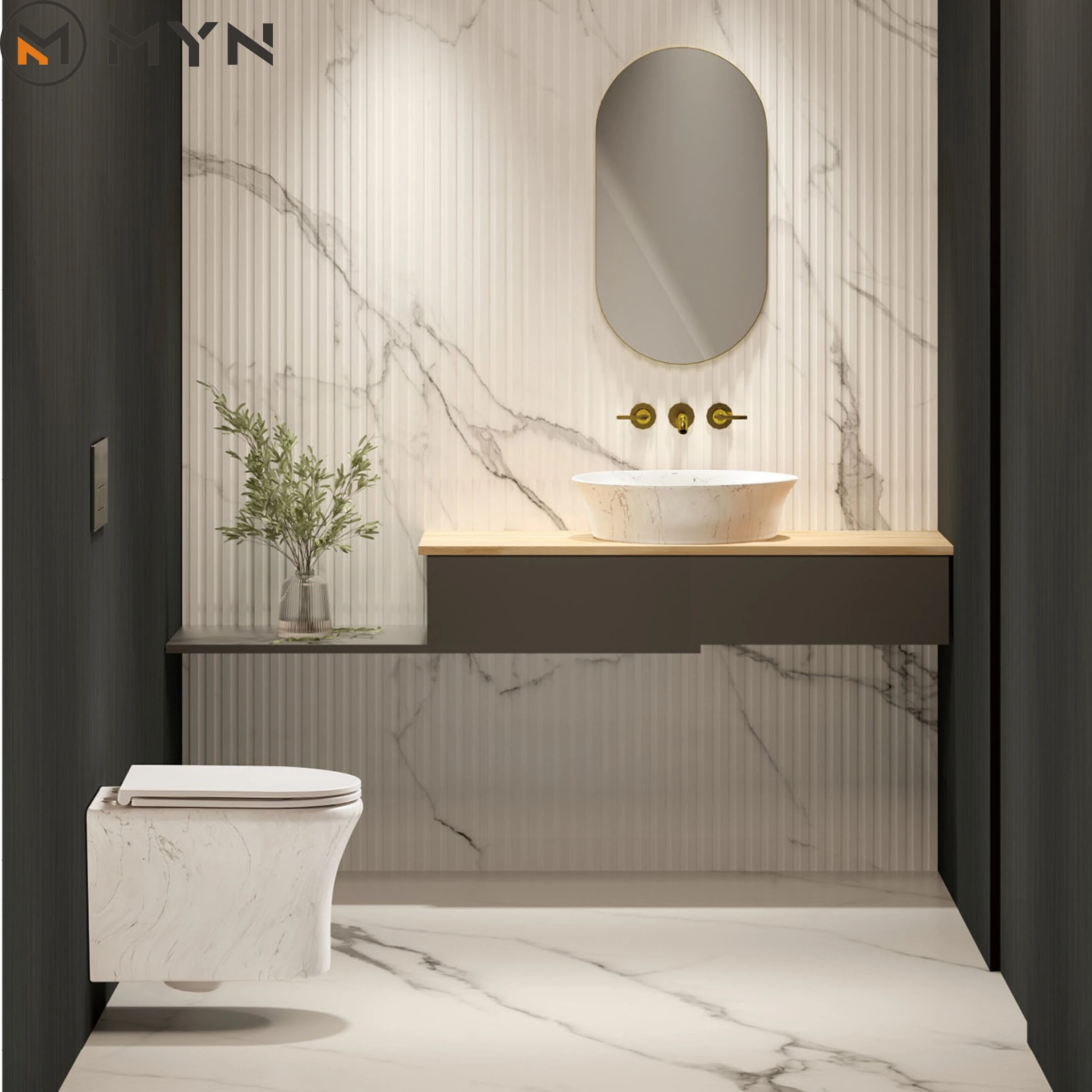 Luxury Floating Marble Toilet Wall Mounted Fluted Rimless Wc Bathroom ...