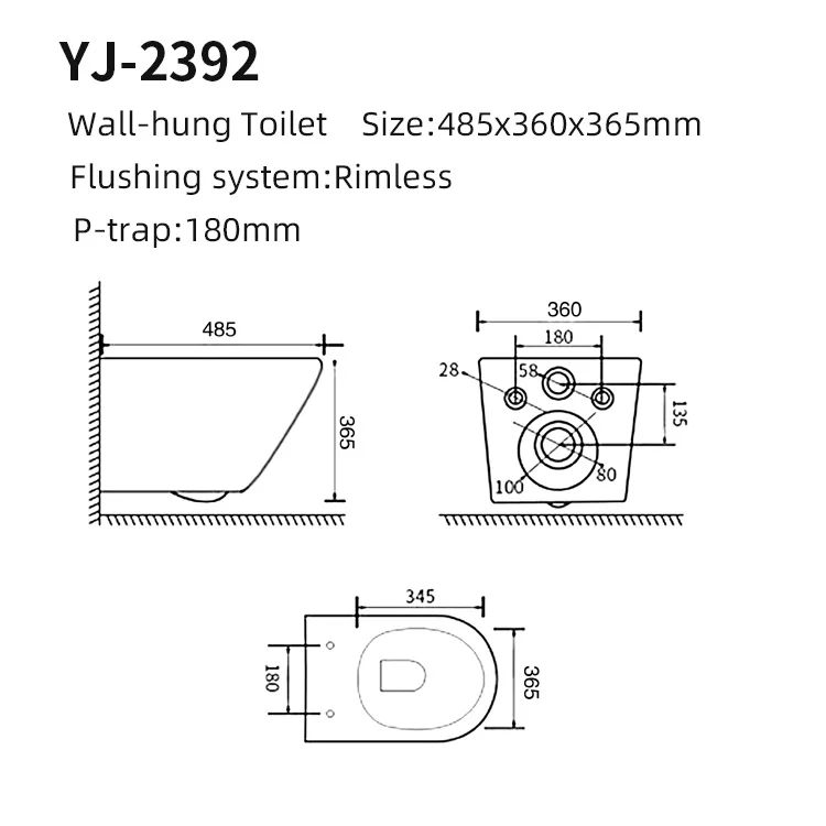P Trap 180mm Compact Wall Hung Toilet Bowl Square Floating Toilet Bowl