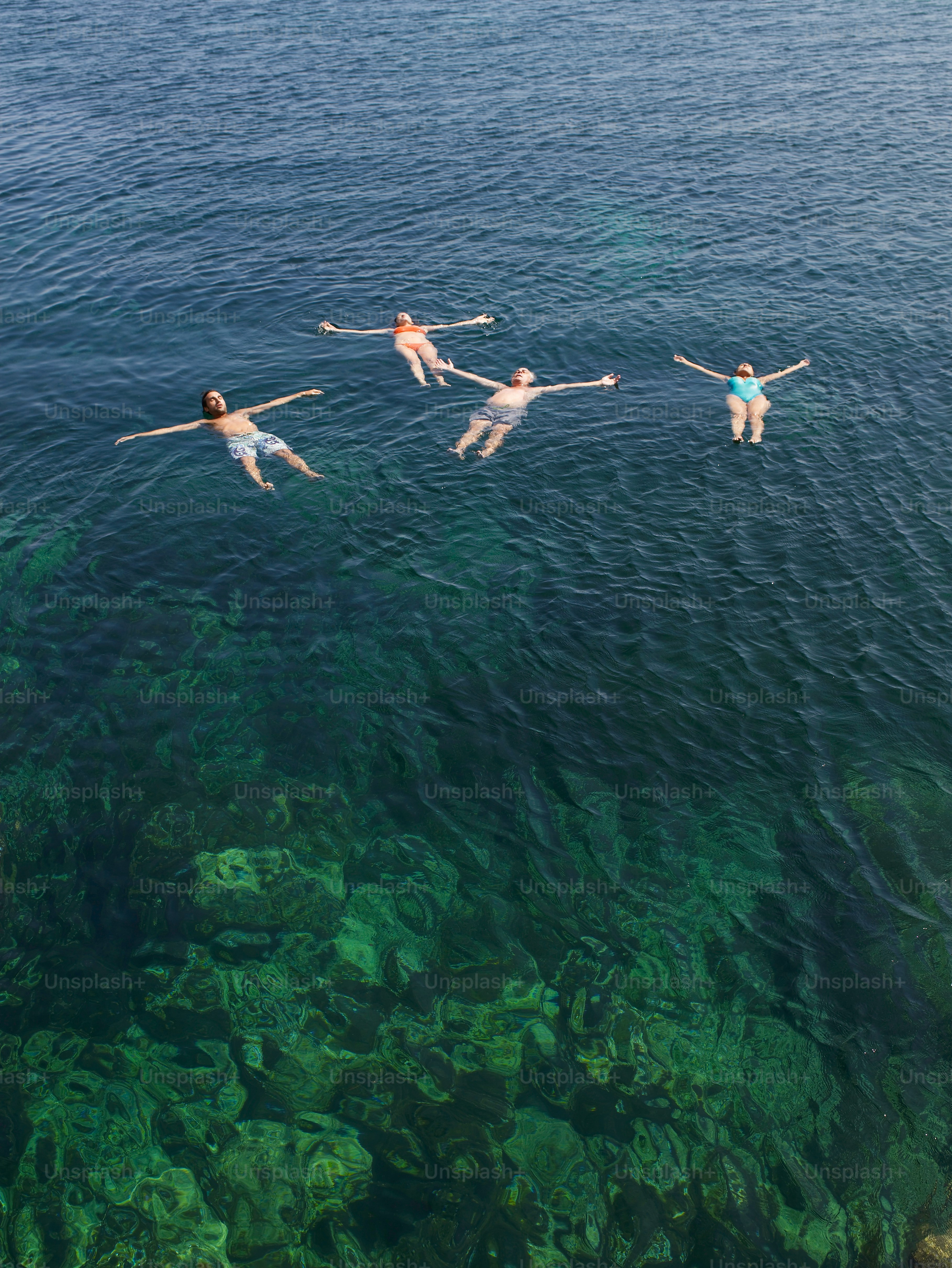 Group Of People Friends Family Floating In Blue Green Cool Water Of ...