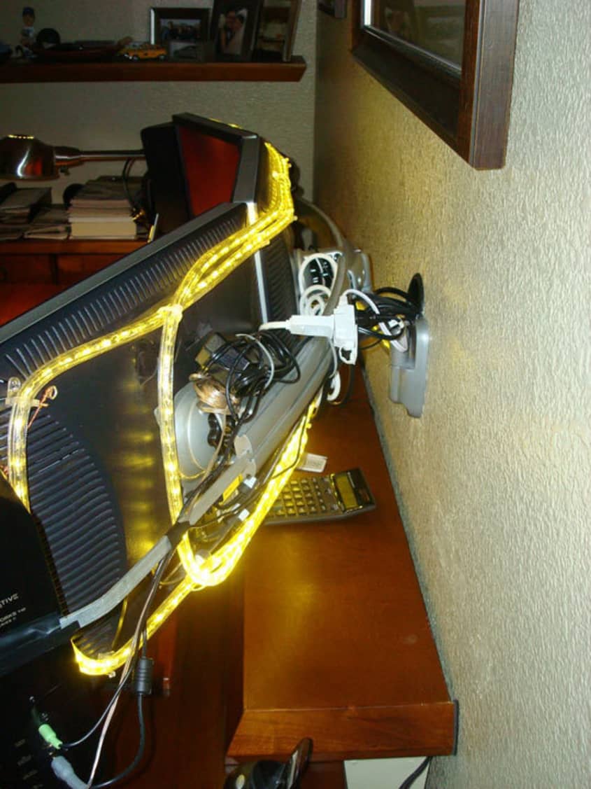 My rig revision! Now with dancing LEDs and floating monitor stand ...
