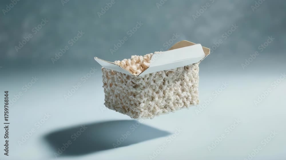 Floating box of fluffy material with open flaps, shadow on surface ...