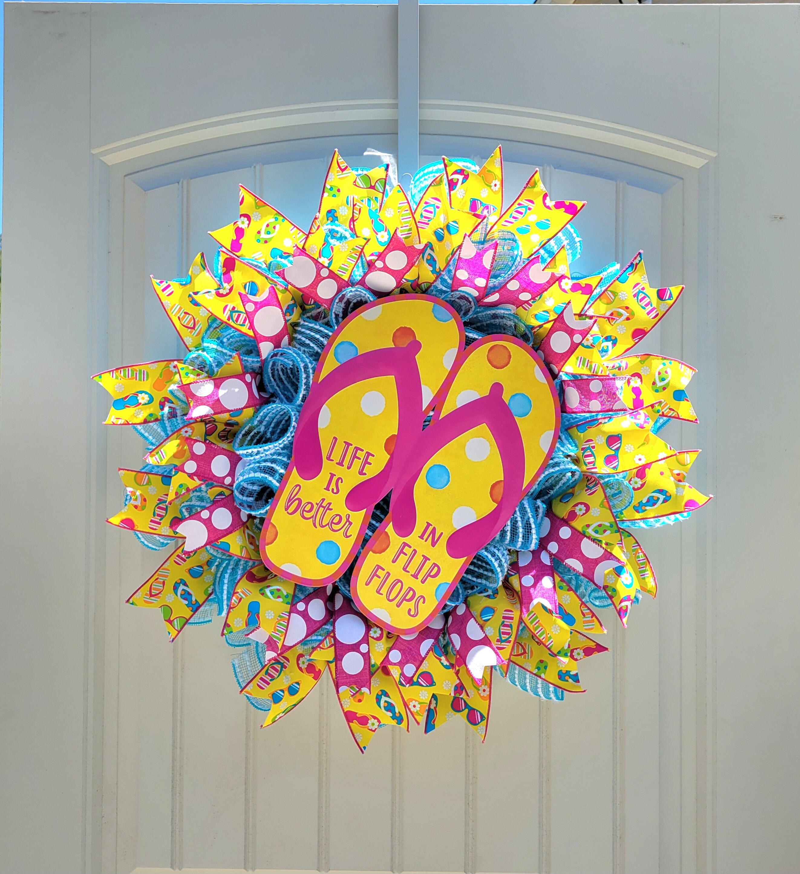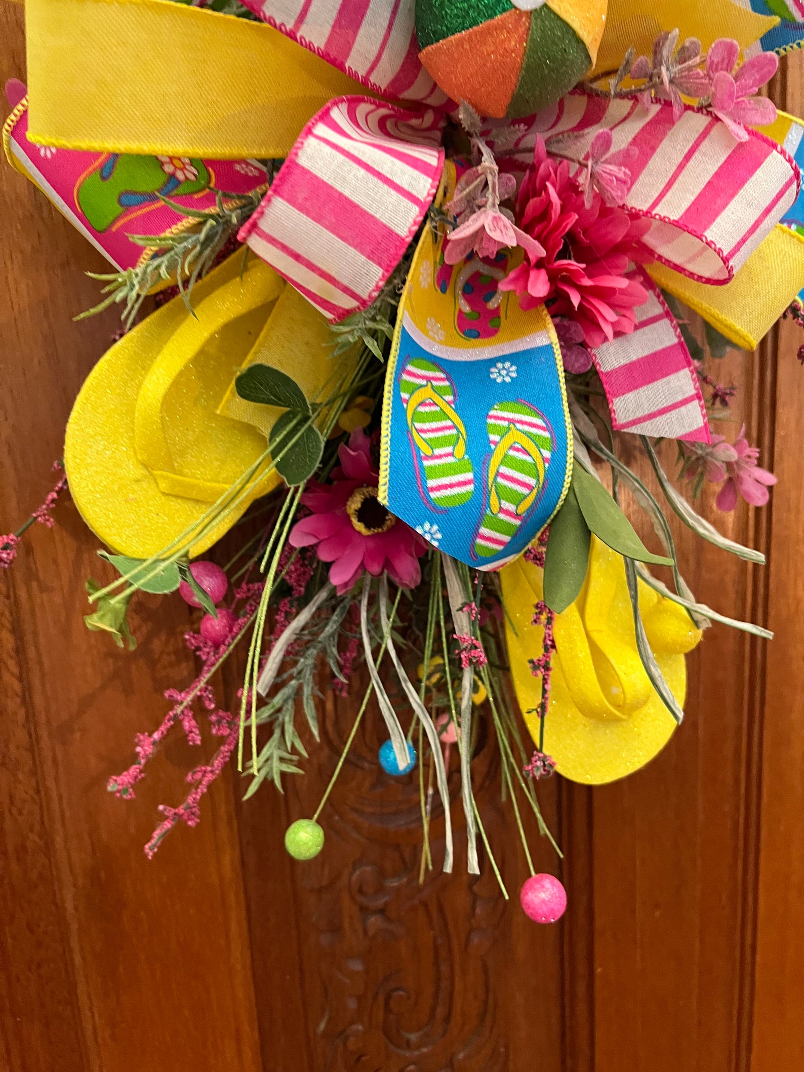 Summer Wreath for Front Door, Flip Flop Wreath, Beach Wreath, Pool ...