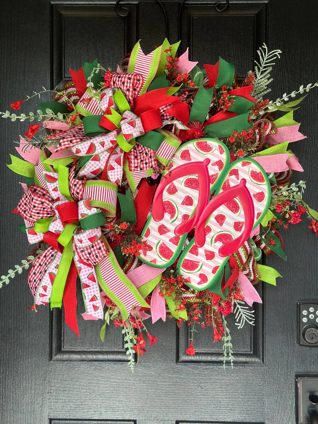 Watermelon Flip-flop Front Door Wreath With Mesh Florals and Plenty of ...
