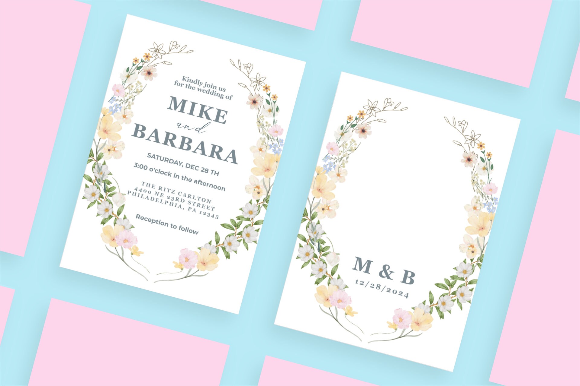 Bright Floral Border Wedding Invitation 1 Stock Template | Adobe Stock