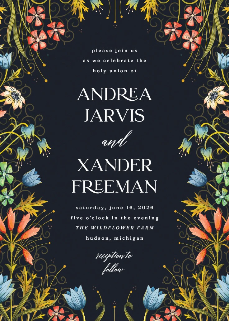 Floral Edge - Wedding Invitation Template (Free) | Greetings Island