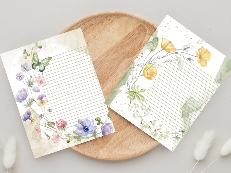 Floral Stationery Set: Watercolor Flower Note Paper (digital Download ...