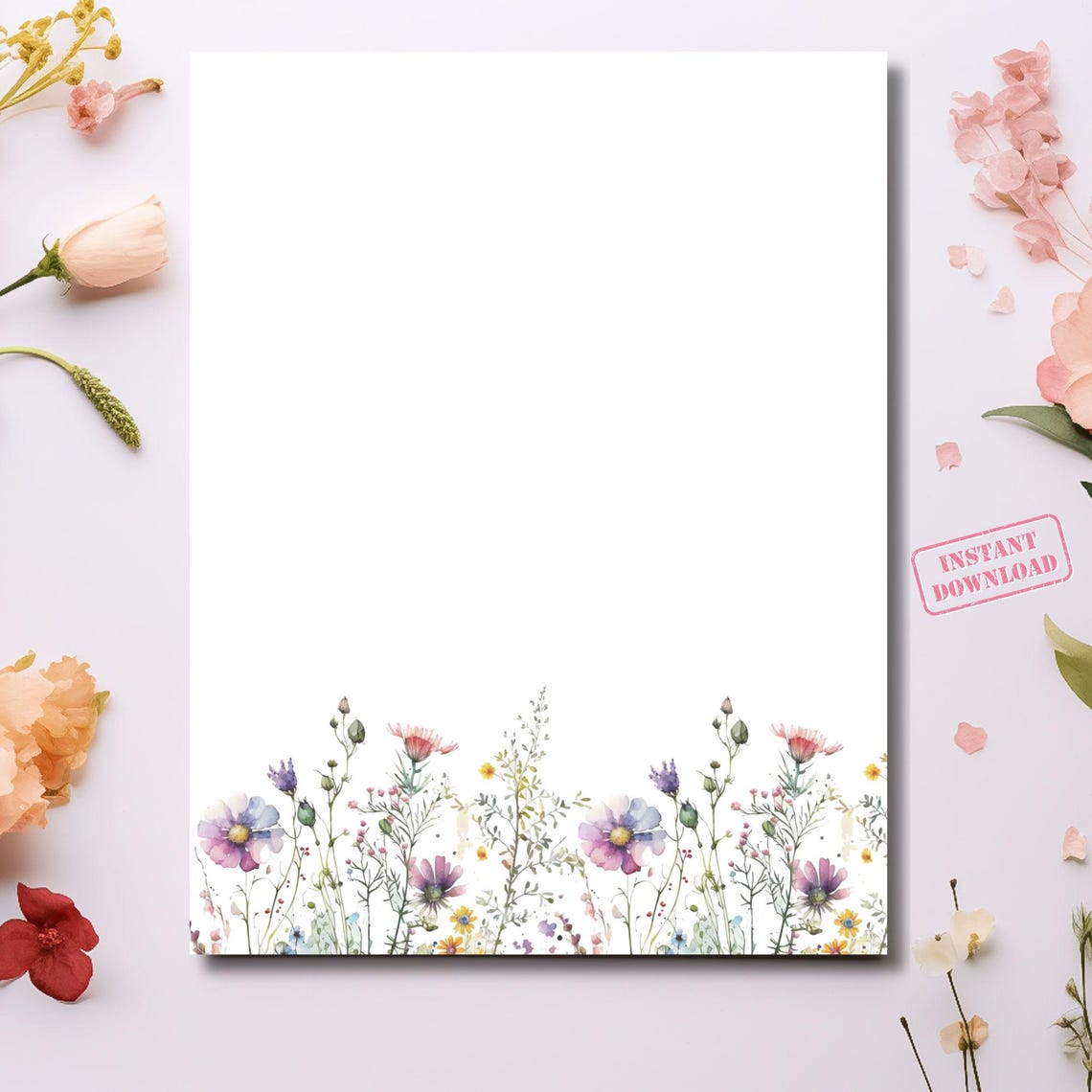 Watercolor Flowers Writing Paper Digital Note Paper | Etsy | Writing ...