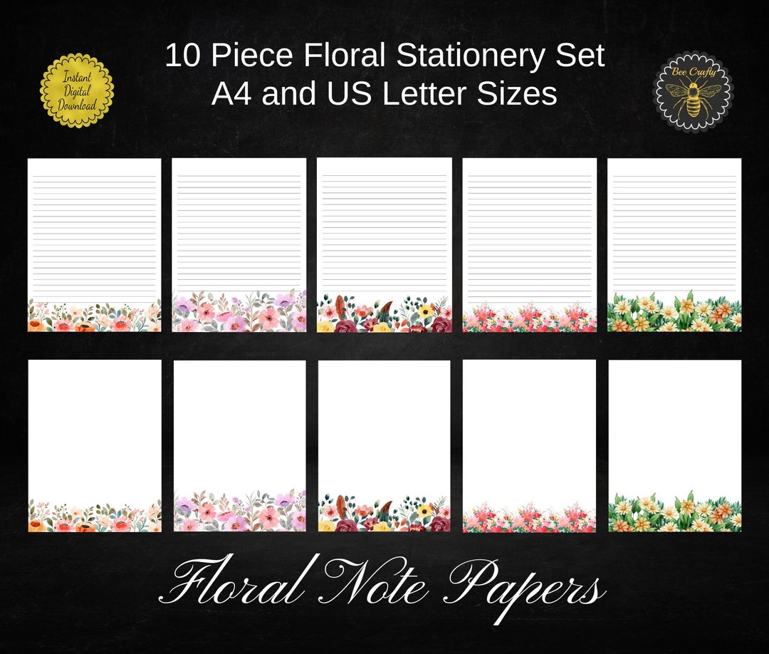 Botanical Printable Note Paper: Floral Stationery Bundle (digital ...