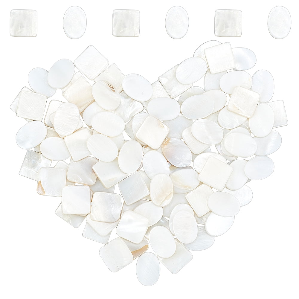 100Pcs 2 Style Natural Freshwater Shell Cabochons Square Oval Seashell ...
