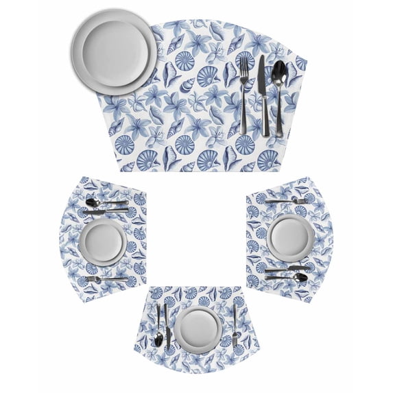 Blue Coastal Round Placemats Set of 2, Shell Floral Ocean Retro ...
