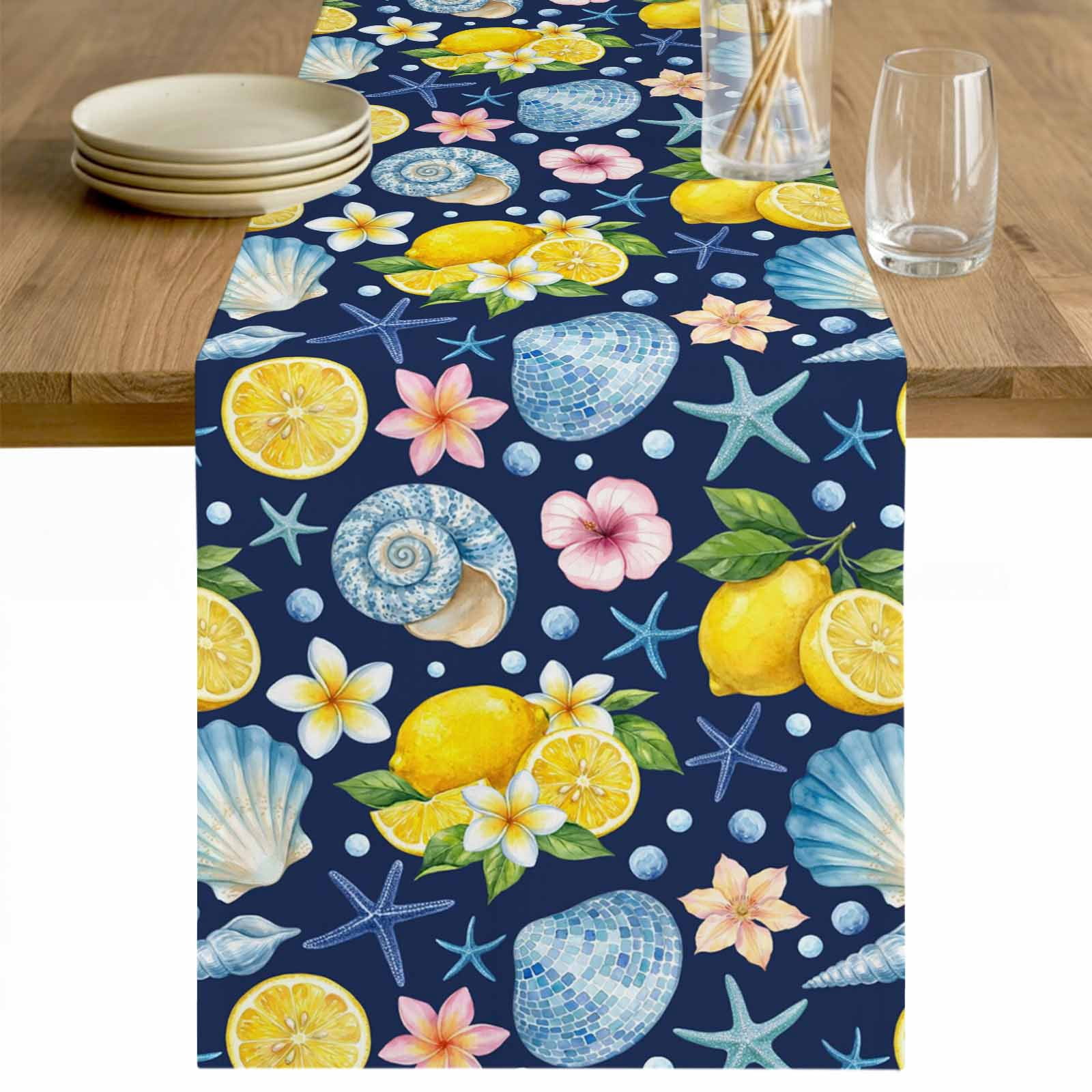 Coastal Table Runner - 36 Inch Long Summer Lemon Flower Shell Starfish ...