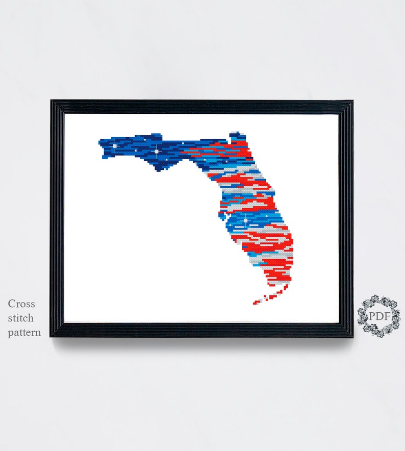 Florida State Map Modern Cross Stitch Pattern PDF American - Etsy