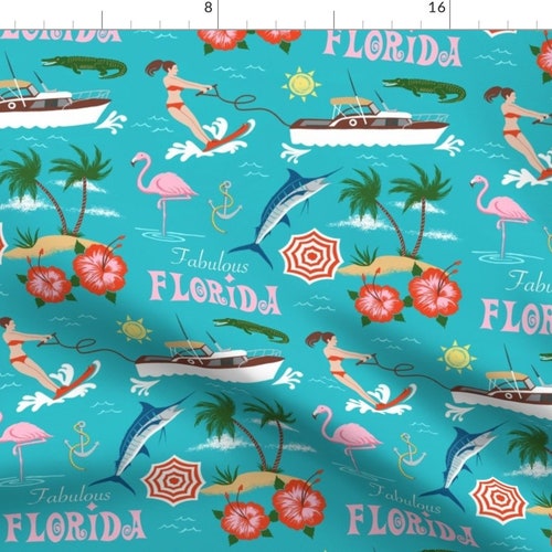 Florida Blue Vacation Summer Pattern Postcard Fabric - Etsy