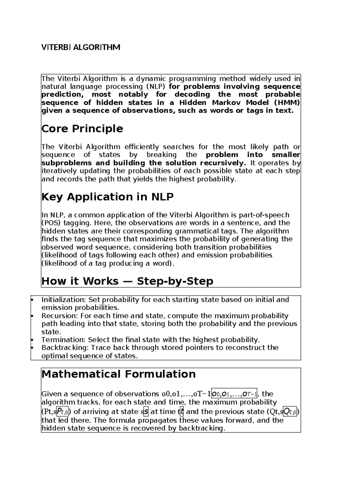 VITERBI ALGORITHM: Key Concepts and Applications in NLP - Studocu