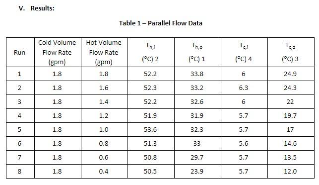 Solved V. Results: Table 1 - Parallel Flow DataTable 2 - | Chegg.com