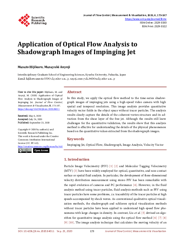 (PDF) Application of Optical Flow Analysis to Shadowgraph Images of ...