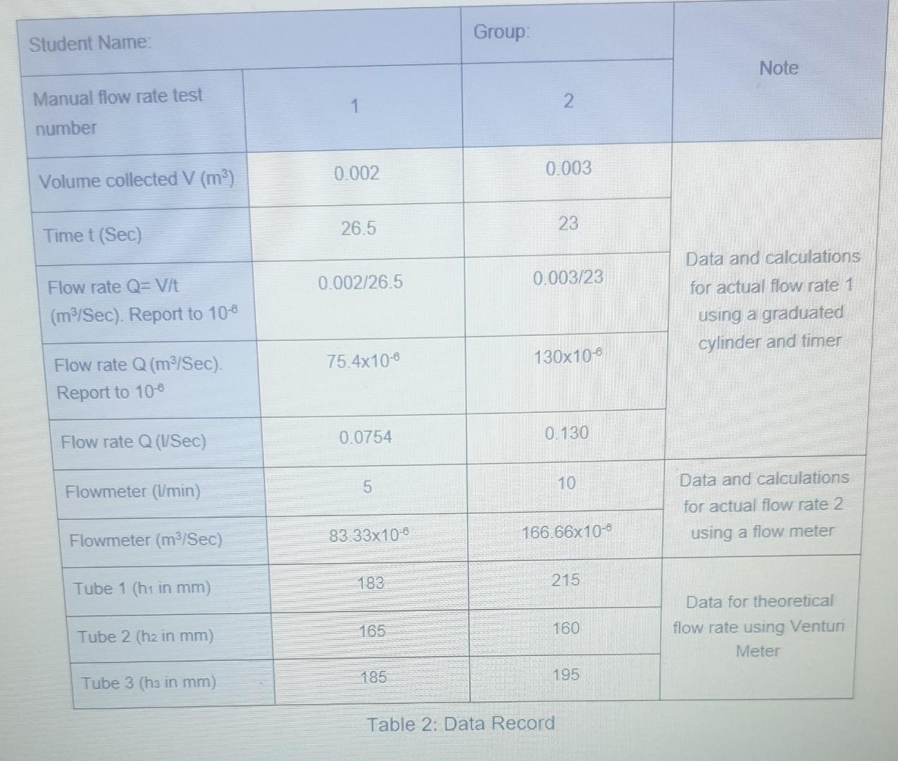Group: Student Name: Note 1 2. Manual flow rate test | Chegg.com
