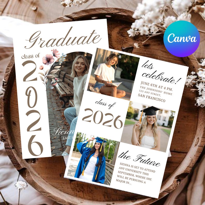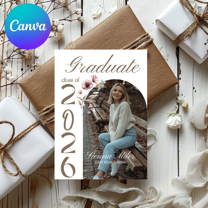 Floral Graduation Announcement Template, Editable Canva Grad Invite ...