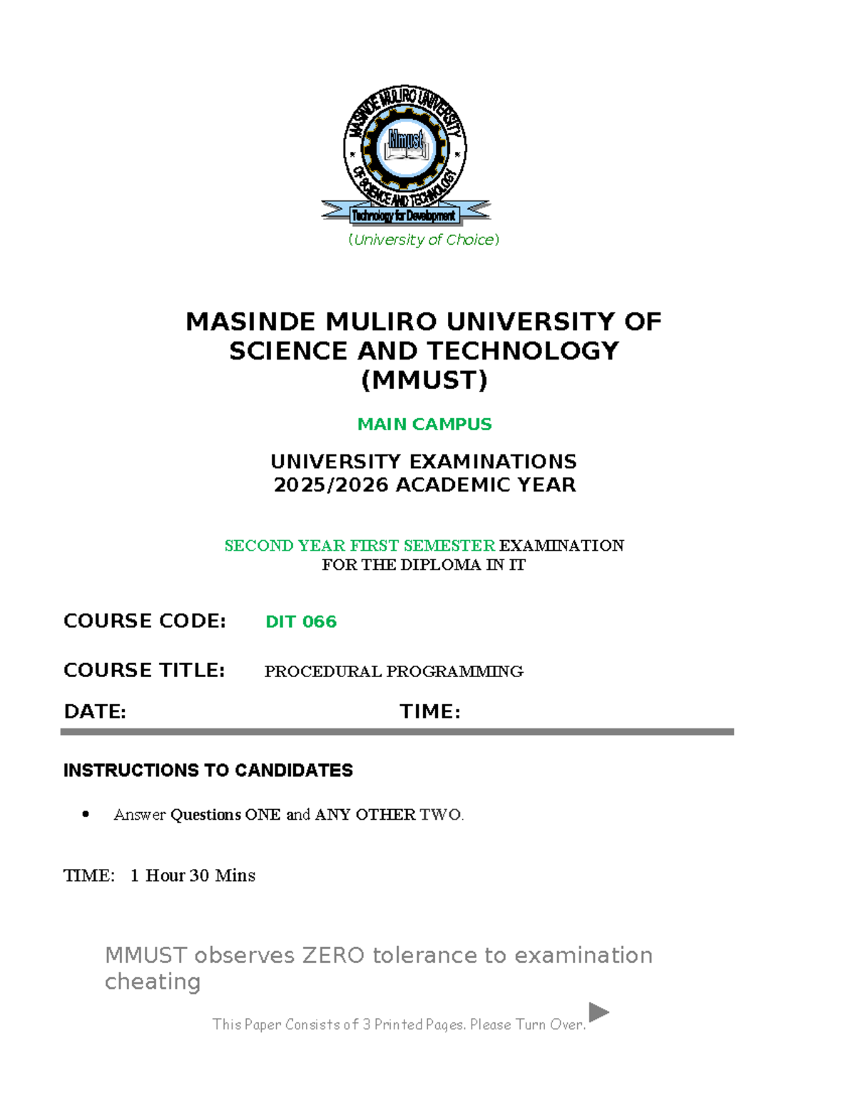 DIT 066: Final Exam Notes for Procedural Programming - SEM1 - Studocu