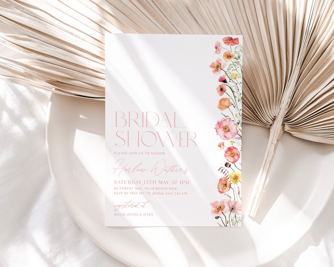 Floral Bridal Shower Invitation, Wildflowers, Pink Flower Invitation ...