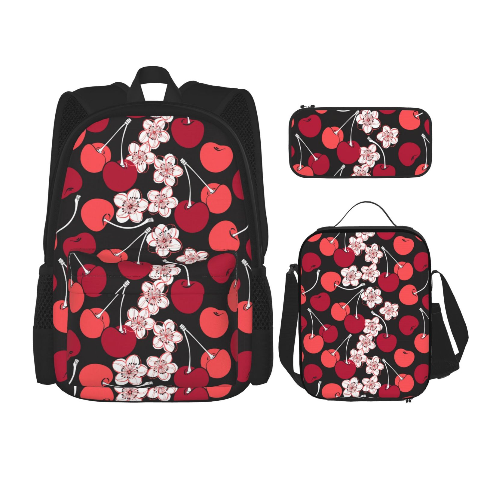 Cherry Blossoms Flower Pattern Backpack Insulated Lunch Bag Pencil Case ...