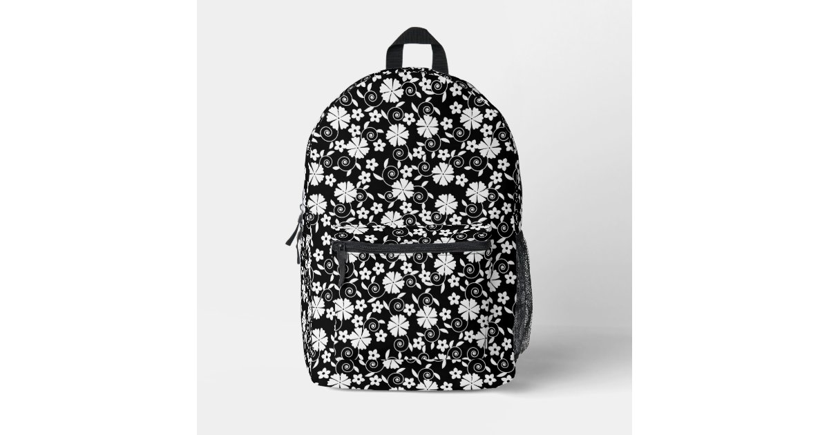 Cute black white flowers pattern printed backpack | Zazzle