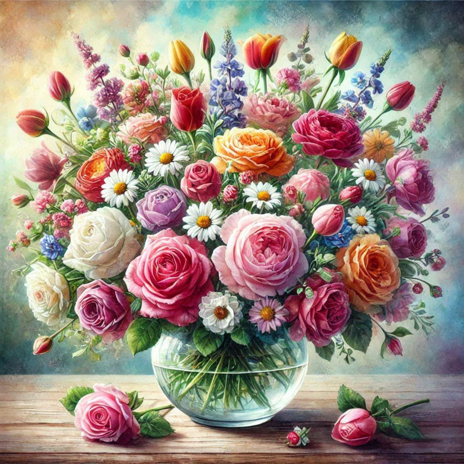PDF Flowers Bouquet Sunflower Roses Counted Cross Stitch Pattern Summer ...