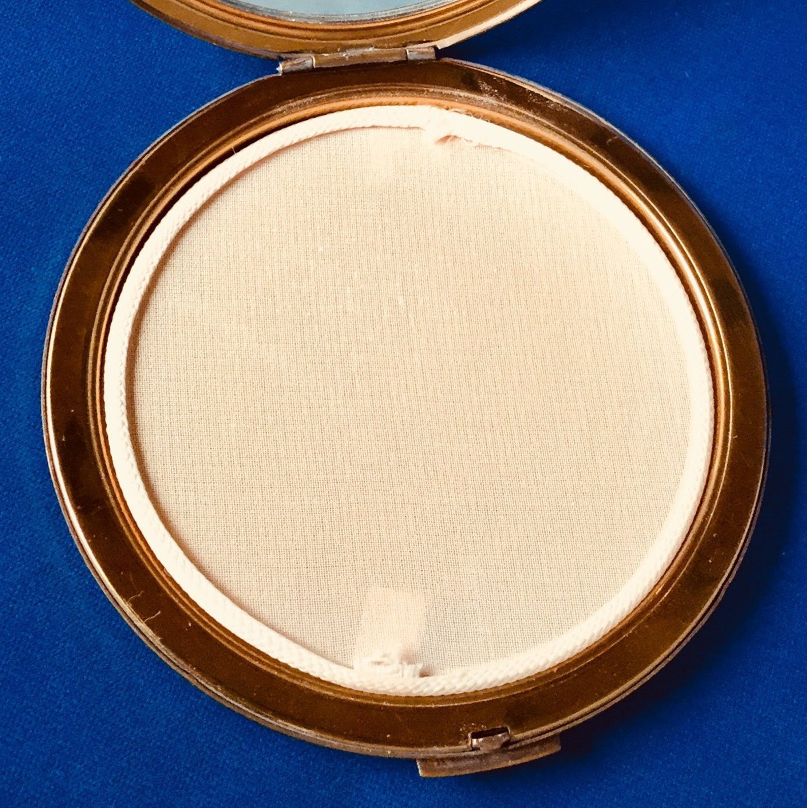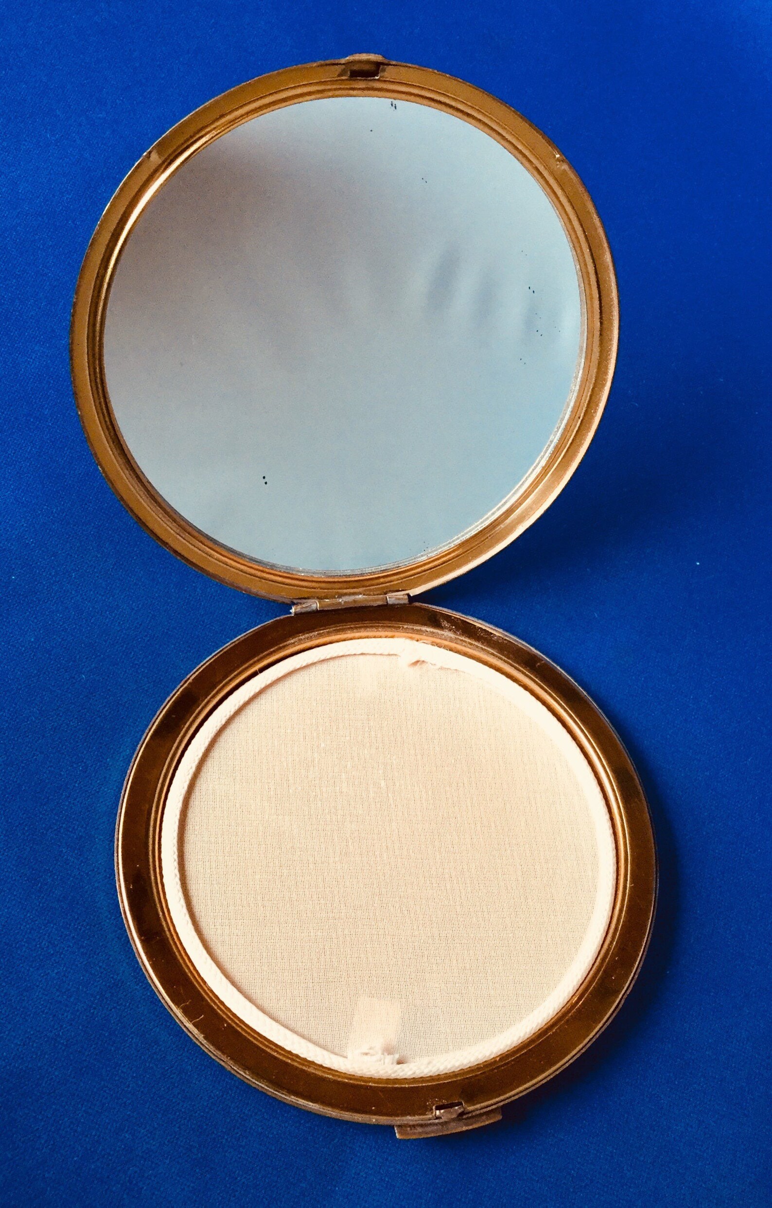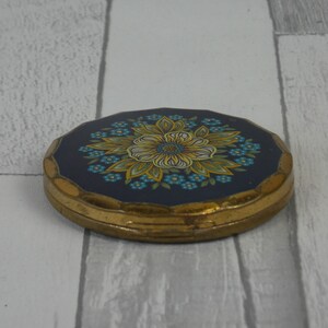 Vintage Cream Powder Compact Gold and Blue Flower Design (s)