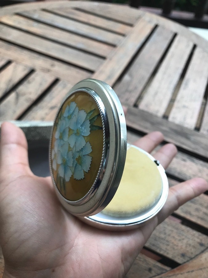 Vintage 1960s Blue Floral Powder Compact - Etsy
