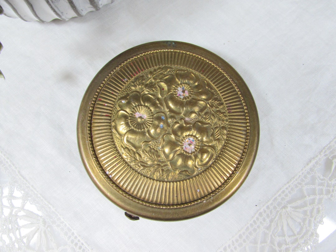 Vintage Brass Flower Powder Compact - Etsy
